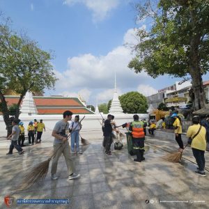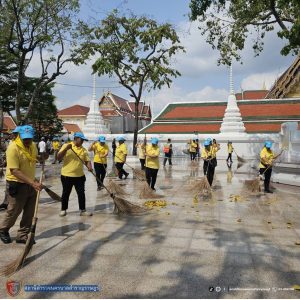 กวาดล้างทำความสะอาดรอบอุโบสถ์ รอบโบสถ์ รอบพระบรมบรรพตภูเขาทองและลานโพธิ์ วัดสระเกศ