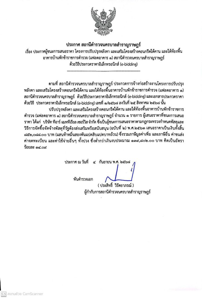 โครงการปรับปรุงหลังคา และเสริงโครงสร้างคอนกรีตใต้คาน และใต้ท้องพื้นอาคารบ้านพักข้าราชการตำรวจ (แฟลต 1) สถานีตำรวจนครบาลสำราญราษฎร์