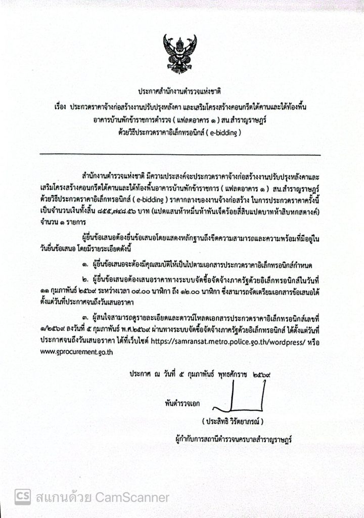 อาคาร 1) สน.สำราญราษฎร์ ด้วยวิธีประกวดราคาอิเล็กทรอนิกส์ (e-bibding) ในวันที่ 11 กุมภาพันธ์ 2569 เวลา 09.00 น.-12.00 น.