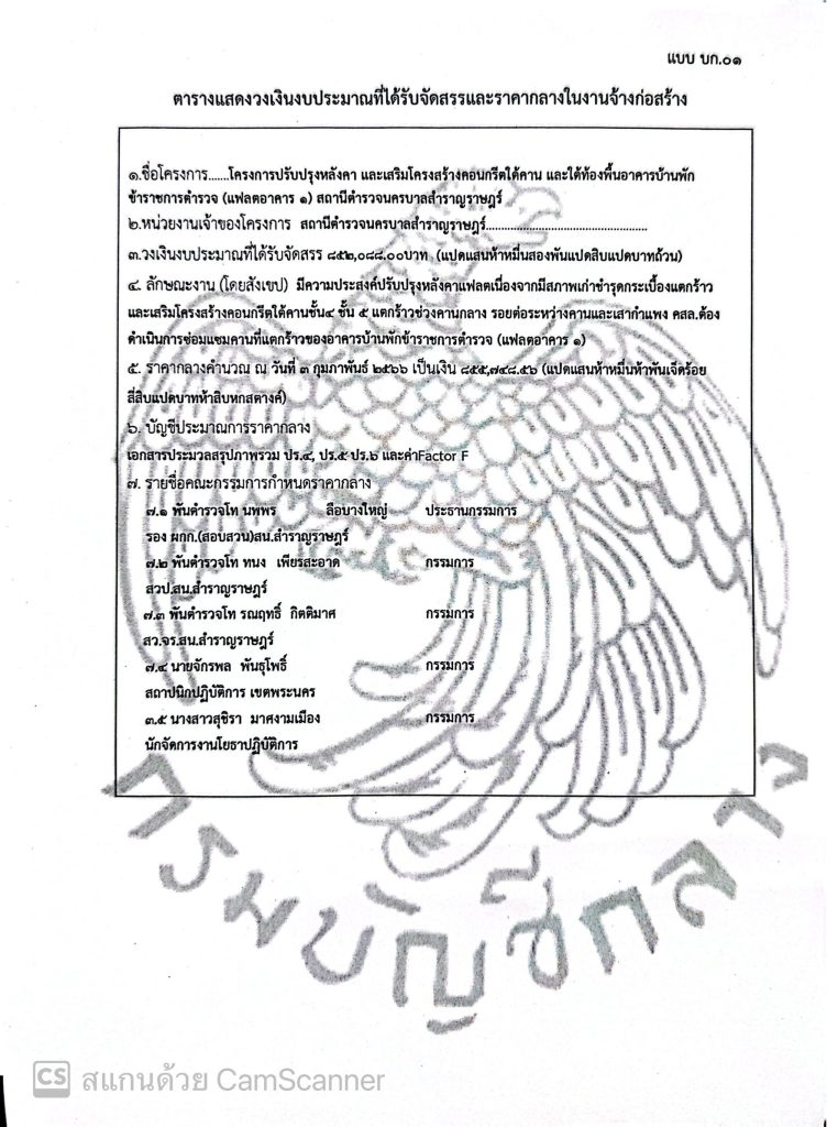 ประกวดราคาจ้างก่อสร้างงาน ปรับปรุง หลังคา และเสริมโครงสร้างคอนกรีตใต้คานและใต้ท้องพื้น อาคารบ้านพักข้าราชการตำรวจ (แฟลต