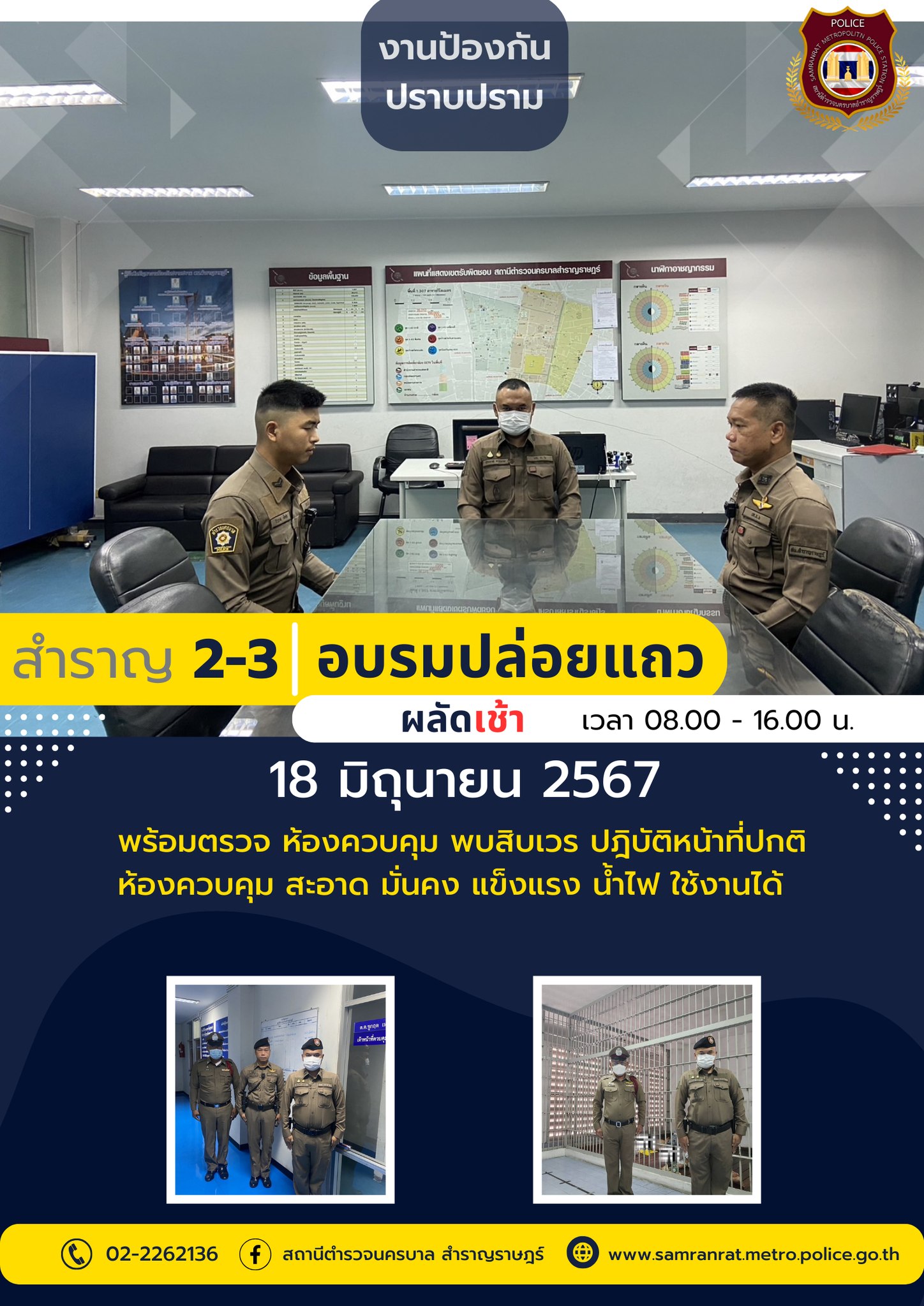 พ.ต.ท.ประภาส ครุธนาค สวป.สน.สำราญราษฎร์ อบรมปล่อยแถวสายตรวจ ( ชุดปฎิบัติการที่ 2 ) ผลัดเช้า เวลา 08.01-16.00 น.ของวันที่ 18 มิถุนายน 2567