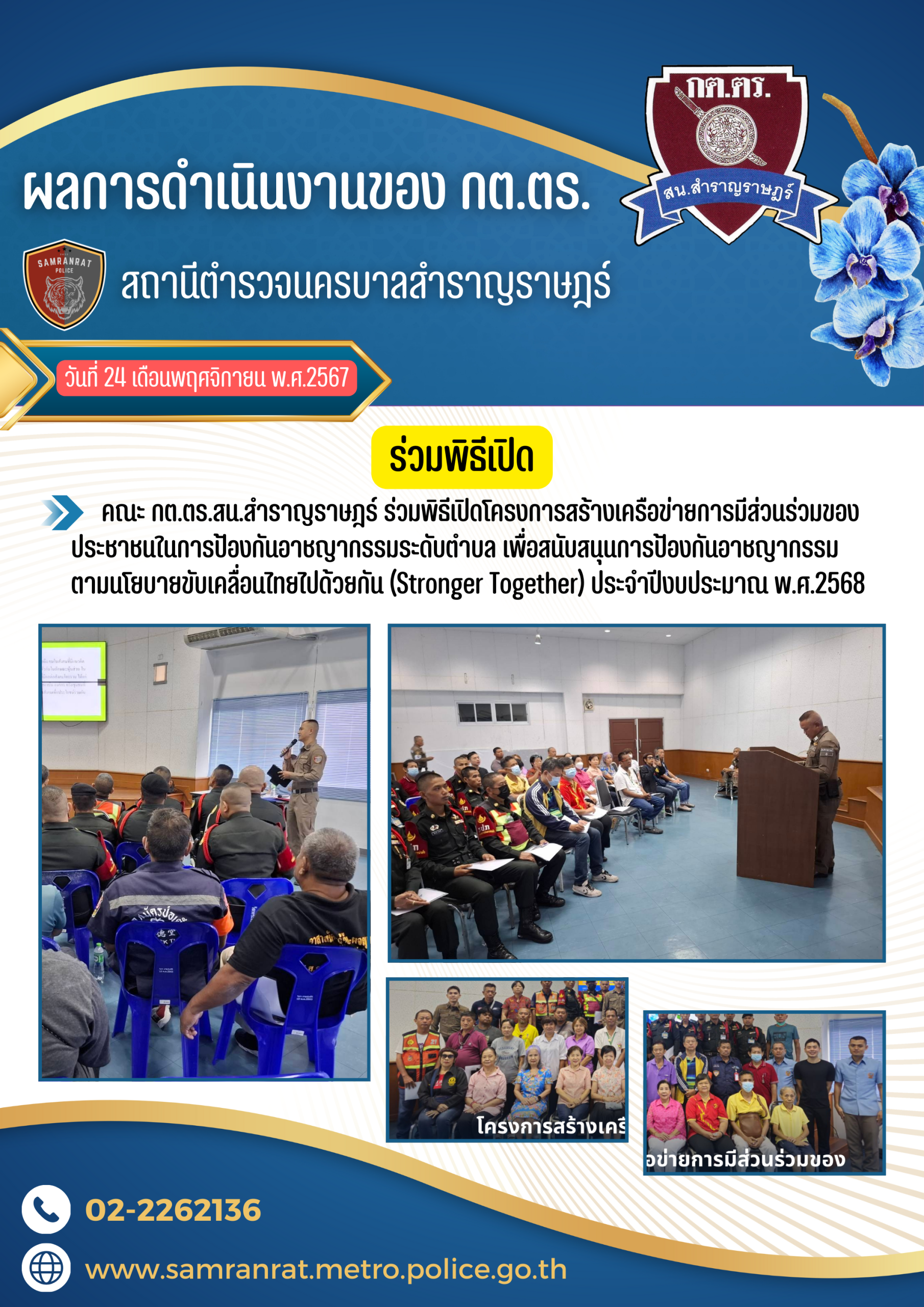 คณะ กต.ตร.สน.สำราญราษฎร์ ร่วมพิธีเปิดโครงการสร้างเครือข่ายการมีส่วนร่วมของประชาชนในการป้องกันอาชญากร [อ่านต่อ…]