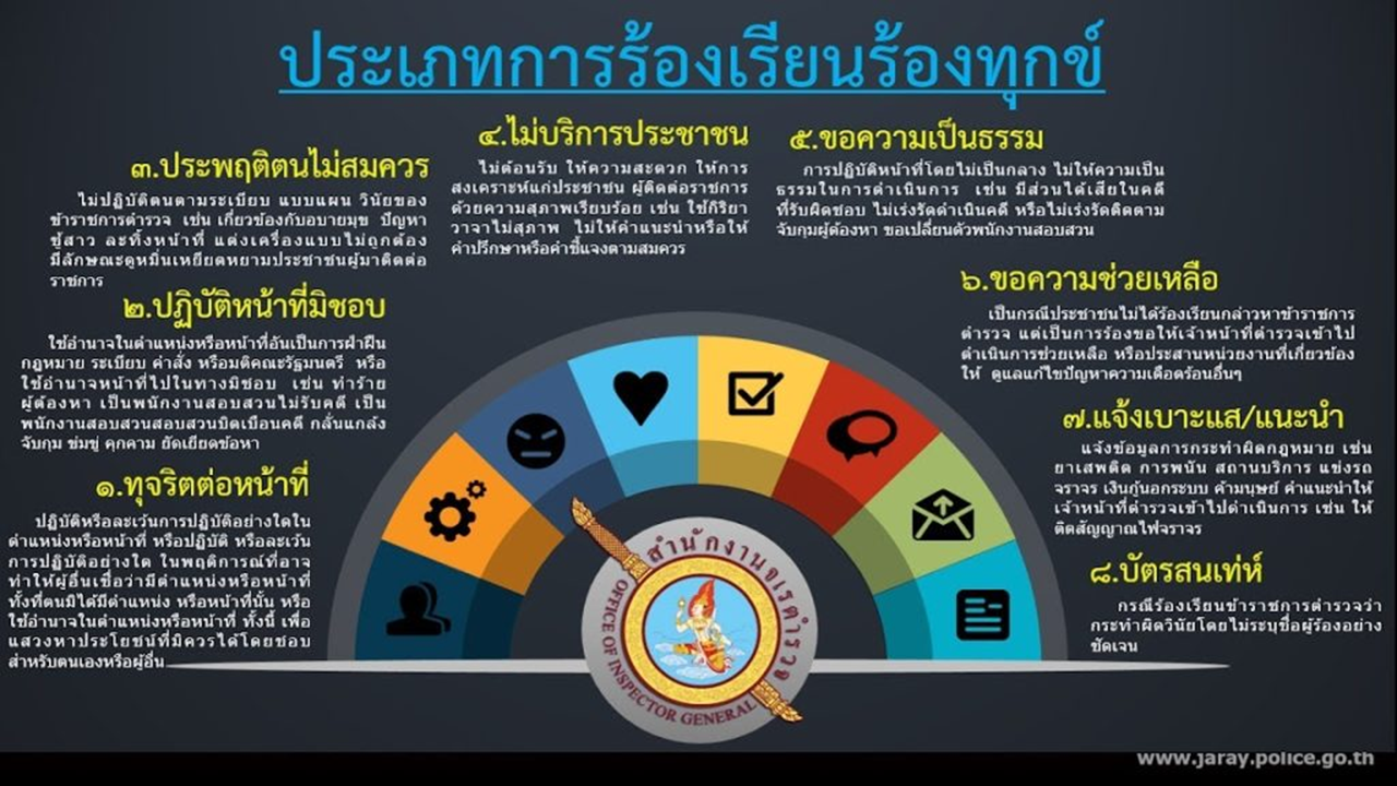 - ทางระบบร้องเรียน/ร้องทุกข์ เรื่องทุจริตและประพฤติมิชอบ สำนักงานจเรตำรวจ (เจ-คอมส์) Jcoms.police.go.th