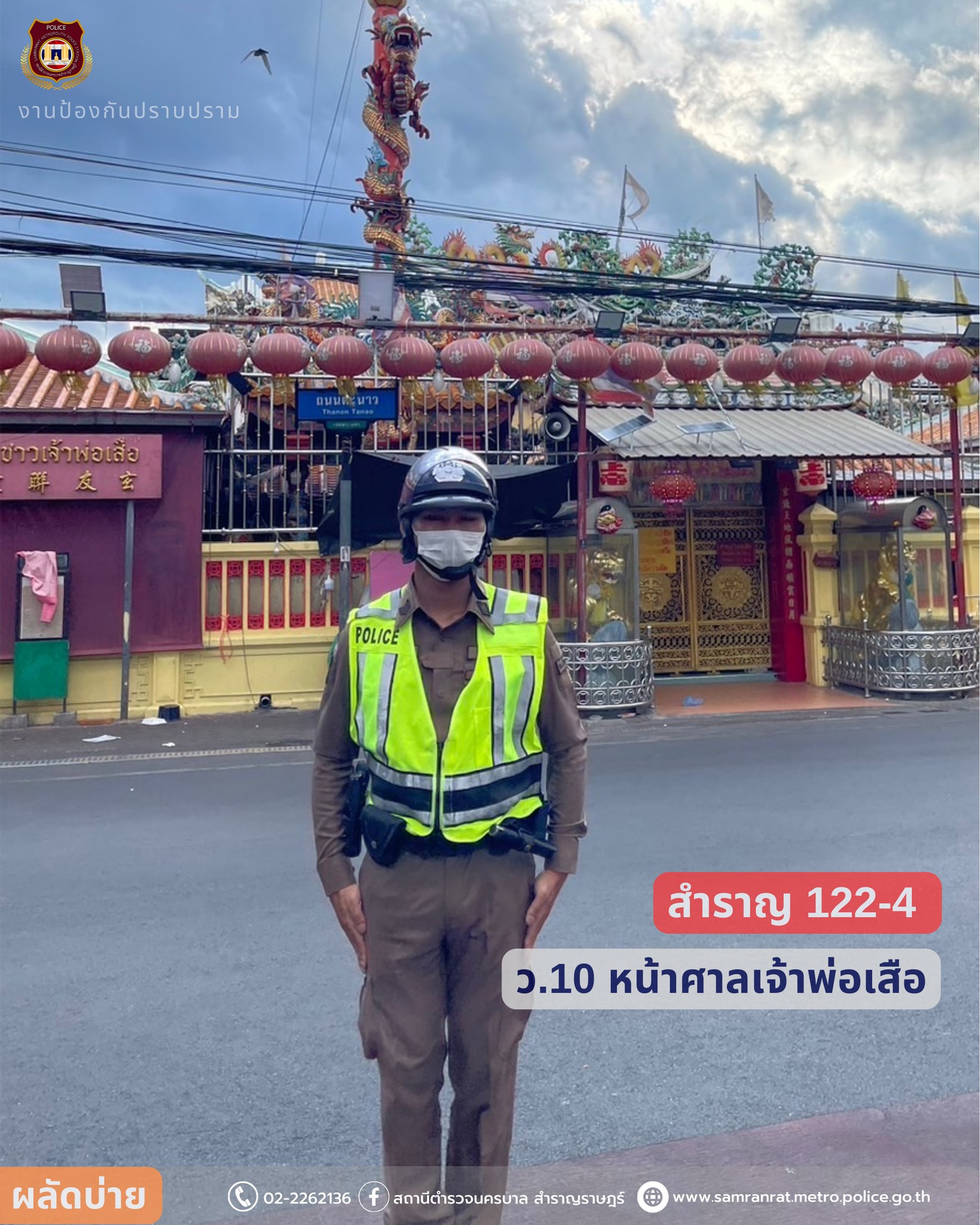 สายตรวจ จยย. สำราญ 122-4 ว.10 ป้องกันเหตุแยกศาลเจ้าพ่อเสือ เหตุการณ์ทั่วไปปกติ