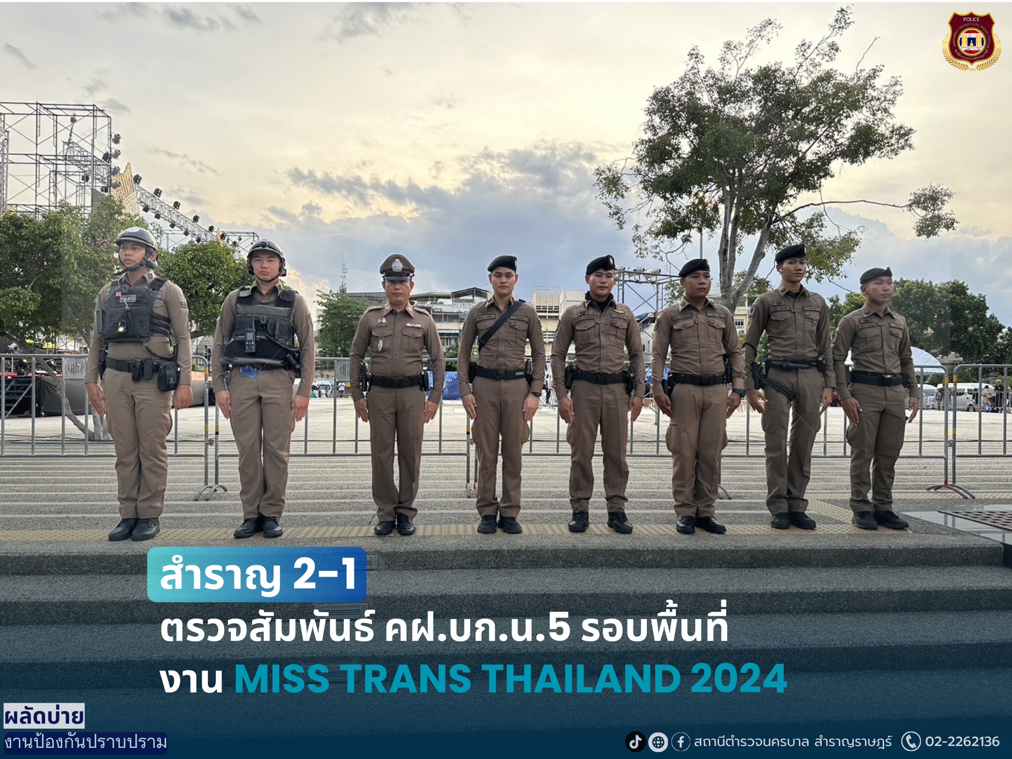 พ.ต.ท.ทนง เพียรสะอาด สวป.ฯ (สำราญ 2-1) พร้อมชุดเคลื่อนที่เร็ว ตรวจสัมพันธ์ เจ้าหน้าที่ คฝ.บก.น.5 ดูแลความปลอดภับรอบพื้นที่จัดงาน Miss Trans Thailand 2024